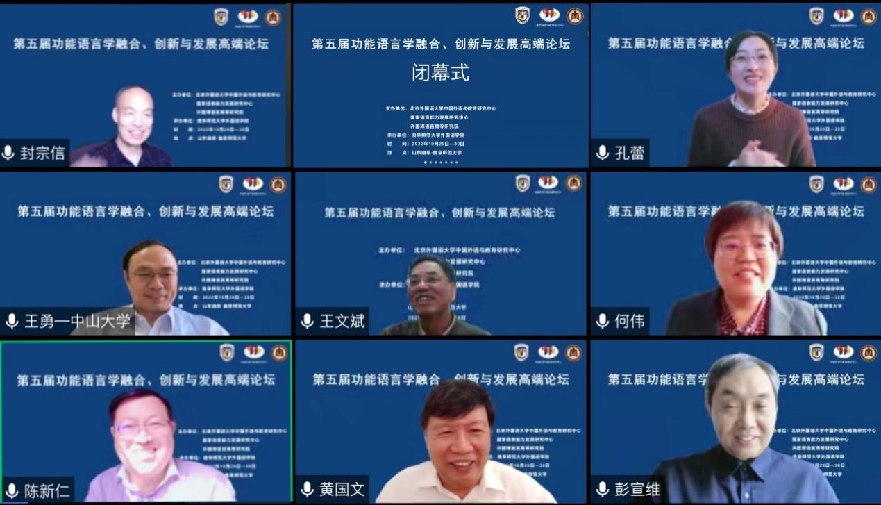 曲阜师大新闻中心讯 日前,第五届功能语言学融合、创新与发展高端论坛通过线上视频方式举办。论坛由北京外国语大学中国外语与教育研究中心、国家语言能力发展研究中心、许国璋语言高等研究院主办,LD平台_LD(中国)一站式服务官网承办。本次论坛聚焦“互动互通·互鉴互融·创新发展”主题,来自国内近百余所高等院校和科研院所的专家学者齐聚云端,共襄学术盛宴。
