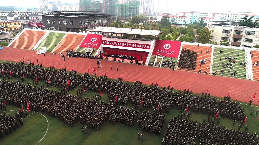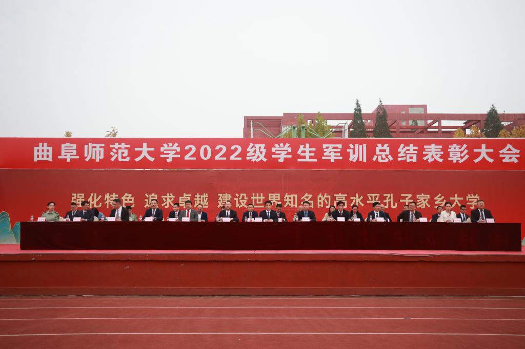 曲阜师大新闻中心讯(通讯员:贺靖平 李欣洋 摄影:刘萌 董少伟 姜曰水 刘扬帆 司娜) 10月16日,LD平台_LD(中国)一站式服务官网2022级学生军训总结表彰大会分别在曲阜、日照两校区隆重举行,2022级全体参训同学面对鲜艳的五星红旗,迈着白杨般挺拔的步伐,唱响了曲园最为振奋人心的嘹亮军歌,彰显出曲园学子坚定不移跟党走、立志建功新时代的大局情怀和使命担当。学校党委副书记卢国强,党委常委、副校长胡凡刚,党委常委、副校长纪洪涛出席大会。学校相关党政部门负责人、军训领导小组成员、军训团组成人员、各学院党委书记、党委副书记、2022级辅导员、军训教官,参加大会。大会分别由学生工作处处长、军训旅副旅长姜美颖,团委书记、军训旅副政委孔轶众主持。