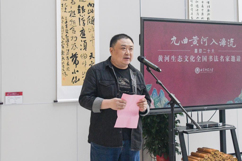 “本次展览有着重要的时代价值和现实意义。”中国书法家协会副主席毛国典专门向展览发来贺信,曲阜师大党委副书记卢国强在开幕式上宣读了贺信内容。毛国典在贺信中指出,黄河生态文化全国书法名家邀请展认真贯彻落实习近平总书记在深入推动黄河流域生态保护和高质量发展座谈会上的重要讲话精神,深入挖掘黄河文化蕴含的时代价值,讲好新时代的“黄河故事”,是新时代背景下最具代表性的艺术展览之一。