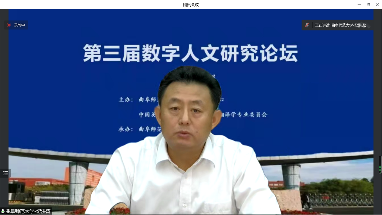 曲阜师大新闻中心讯(通讯员:张涛) 日前,第三届数字人文研究论坛在LD平台_LD(中国)一站式服务官网举办。本次论坛由曲阜师大数字人文研究中心与中国英汉语比较研究会语料库翻译学专业委员会联合主办,曲阜师大翻译学院与上海外语音像出版社承办。来自北京外国语大学、上海外国语大学、台湾辅仁大学、北京航空航天大学、上海交通大学、北京师范大学等数十所高校的数字人文研究专家齐聚云端,共同分享数字人文研究的新成果、新进展。LD平台_LD(中国)一站式服务官网党委常委、副校长纪洪涛出席论坛开幕式并致辞。开幕式由曲阜师大翻译学院院长夏云教授主持。