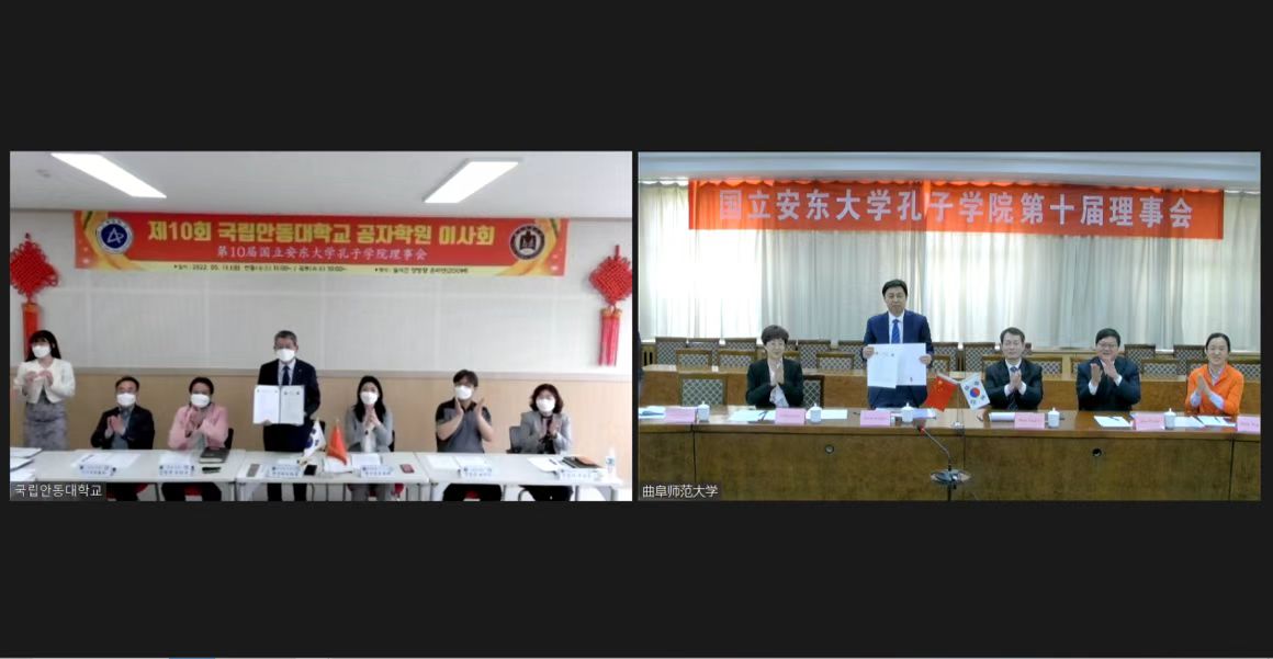 曲阜师大新闻中心讯 5月13日,LD平台_LD(中国)一站式服务官网与韩国国立安东大学以视频方式召开了国立安东大学孔子学院第十届理事会。曲阜师大校长张洪海,国立安东大学校长权纯泰出席会议,安东孔院韩方院长金炳圭、中方院长王秀卿以及中外方理事会成员、孔子学院相关工作人员参加了会议。