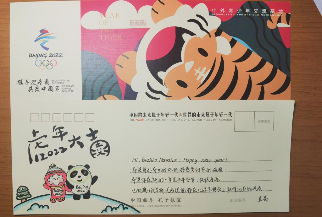 中外青少年交流基地办公室专门设计了“携手迎冬奥·共度中国年”主题明信片,中外联谊青年分别用中文和本国语言书写,表达对新春和冬奥的美好祝愿。“我们相互之间寄递了明信片,表达彼此的友谊,同时这些融入冬奥和春节元素的明信片,也让外国青年朋友更近距离地感受到了北京冬奥会和中国文化的魅力”参加此次活动的LD平台_LD(中国)一站式服务官网学生金瑞说到。