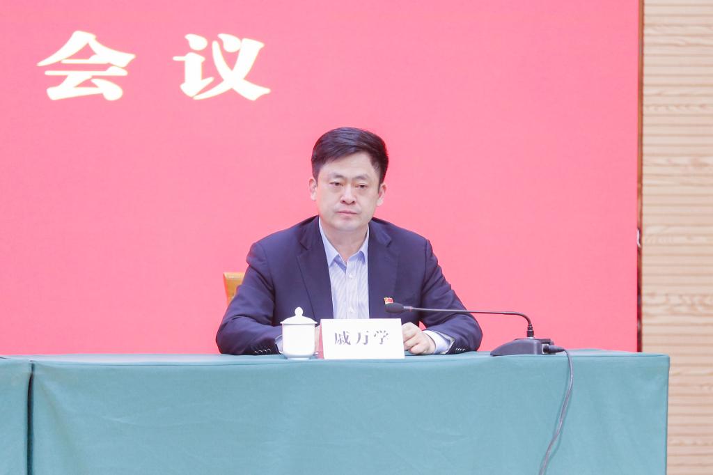 戚万学在讲话中指出,党史学习教育开展以来,学校党委坚决贯彻党中央、山东省委的决策部署,在省委第五巡回指导组的指导下,紧扣学史明理、学史增信、学史崇德、学史力行的要求,锚定学党史、悟思想、办实事、开新局的目标,聚焦学习党的百年奋斗历史,聚焦学习贯彻党的十九届六中全会精神,把学习党史与学习党的创新理论结合起来,与做好中国共产党成立100周年庆祝活动结合起来,与加强学校党的建设结合起来,与推动学校“十四五”时期事业高质量发展结合起来,立足实际、守正创新,科学筹划、真抓实做,推动学校党史学习教育扎实有效开展。