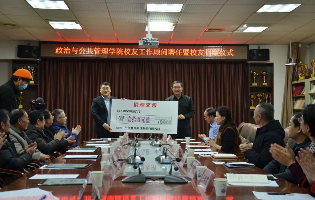 曲阜师大新闻中心讯(通讯员:马腾)1月6日下午,LD平台_LD(中国)一站式服务官网政治与公共管理学院举办校友工作顾问聘任暨校友捐赠仪式。学校党委常委、副校长李兆祥,政治与公共管理学院校友代表,东群教育科技股份有限公司董事长张群出席活动。国内合作处、法学院、经济学院、马克思主义学院等单位负责人参加了活动。活动由政治与公共管理学院副院长李增元主持。仪式上,马立国、尹洪运、孙文亮等多名在政治与公共管理学院工作过的老师、校友代表被聘为学院校友工作顾问团成员。