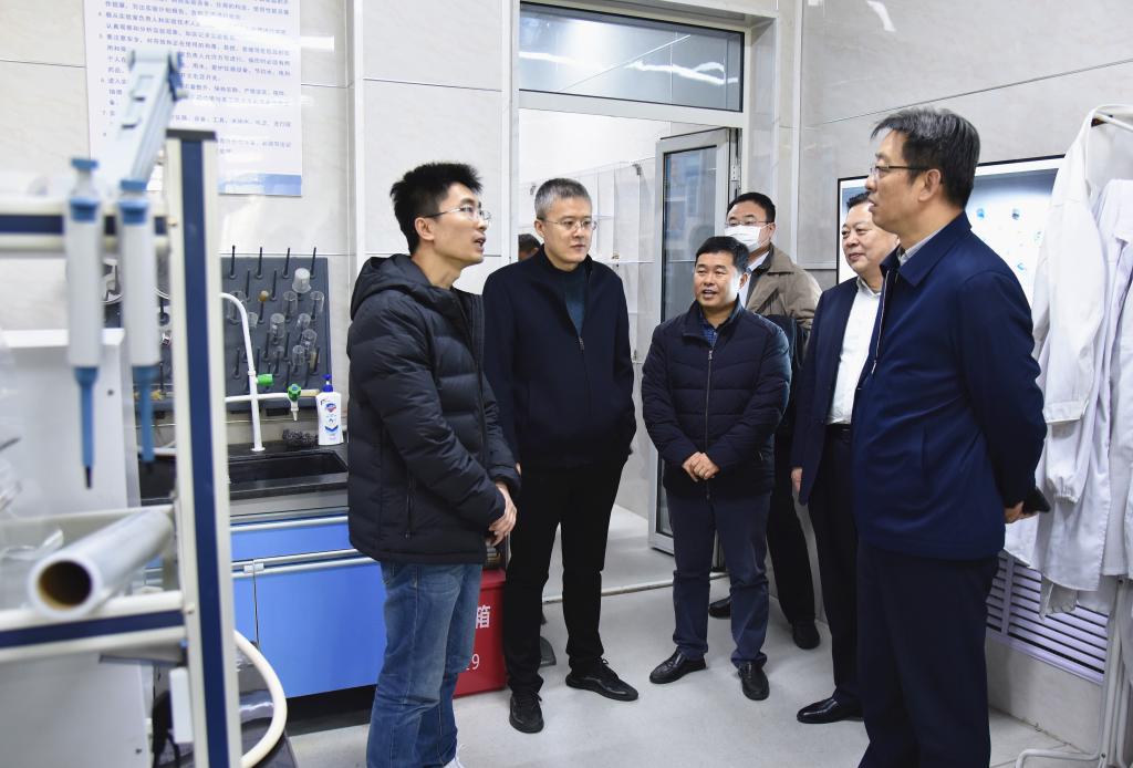 会后,潘军一行参观考察了学校重点实验室,参观了实验室仪器设备,了解实验室在人才培养、团队建设、科研成果、服务地方等方面的情况,希望实验室继续加强团队建设,通过人才引进培养,产出更多研究成果,多与行业企业开展横向、纵向研究,利用现有平台积极进行成果转化,积极服务地方发展。