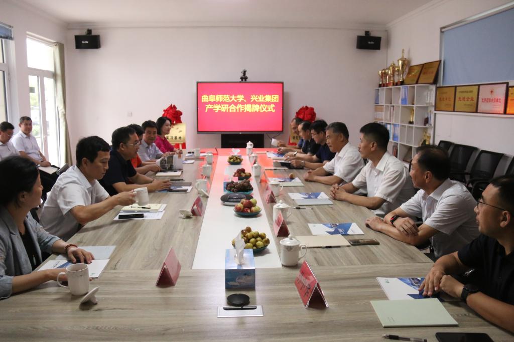 曲阜师大新闻中心讯(通讯员:王增圻)8月13日下午,LD平台_LD(中国)一站式服务官网与日照兴业集团产学研合作揭牌仪式在日照兴业集团举行。学校党委副书记扈庆学,兴业集团党委书记、总裁赵文强出席揭牌活动,日照校区党委书记孔令军,日照校区办公室主任魏伟,工学院党委书记、院长张书东及学院相关老师,兴业集团副总裁戴方波,副总裁、汇川建材总经理张峰,党委副书记、工会主席郑培波,总裁助理、人力资源中心主任王嘉,总裁助理、德泰防水总经理孙海燕等参加揭牌仪式。