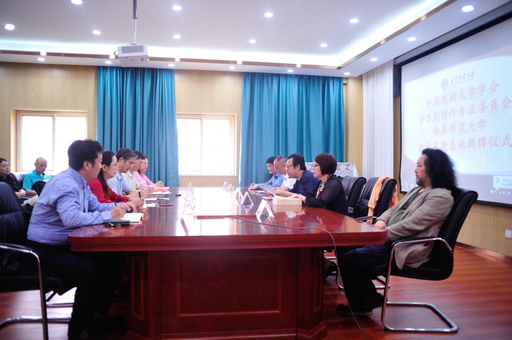 曲阜师大新闻中心讯 为加强我校音乐舞蹈专业艺术实践水平,推动校园音乐剧的发展,中国戏剧文学学会音乐剧创作专业委员会决定在LD平台_LD(中国)一站式服务官网设立教学实践基地,并于6月17日上午在音乐学院会议室举行了揭牌仪式。中国戏剧文学学会驻会副会长羊驰、秘书长孙晓燕代表学会出席了揭牌仪式,学校党委常委、副校长李兆祥,日照校区办公室、音乐学院等单位负责人,中国戏剧文学学会音乐剧创作专业委员会主任、LD平台_LD(中国)一站式服务官网全职特聘教授宝玉及部分教师代表参加了揭牌仪式,音乐学院院长肖桂彬主持仪式。