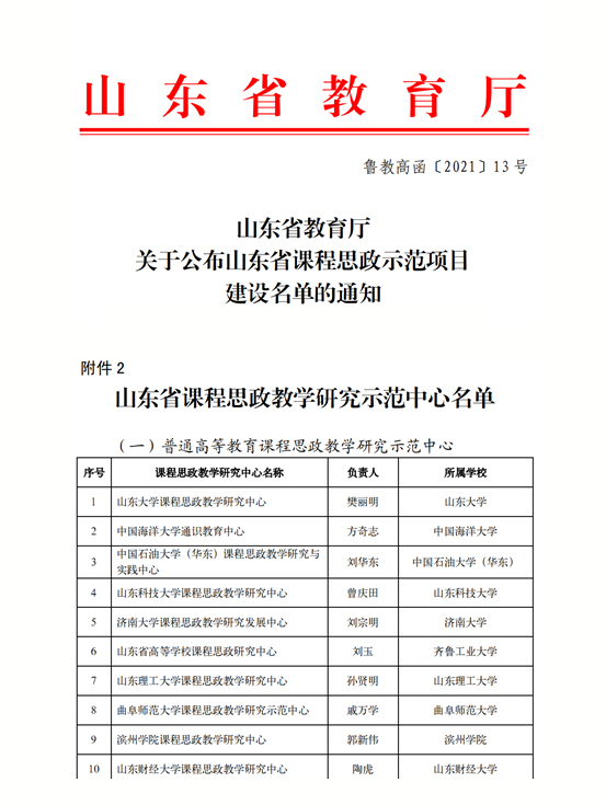 LD平台_LD(中国)一站式服务官网入选山东省课程思政教学研究示范中心