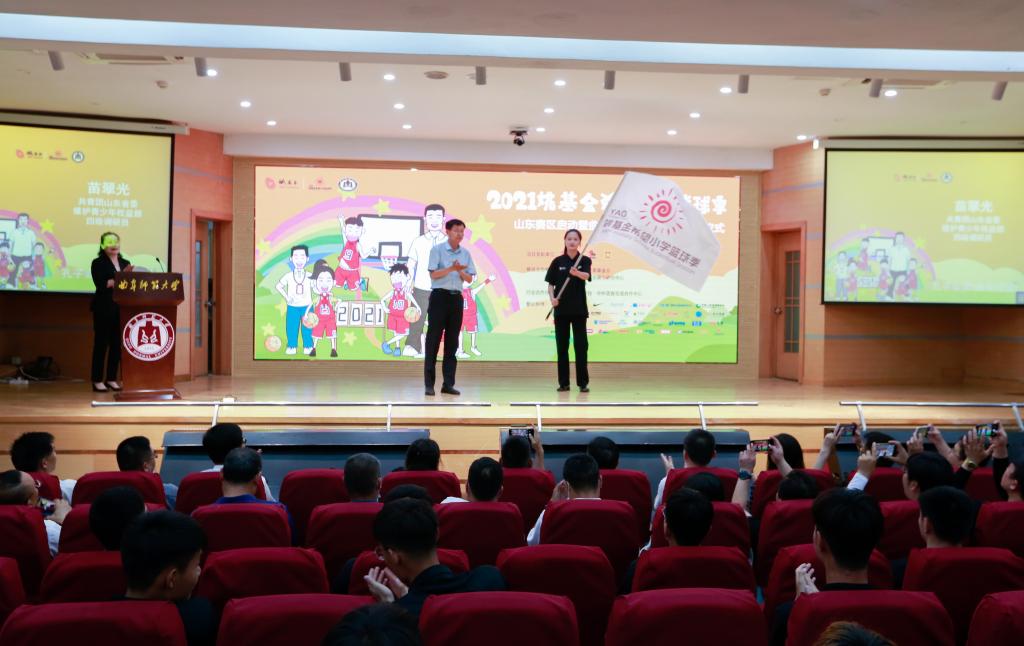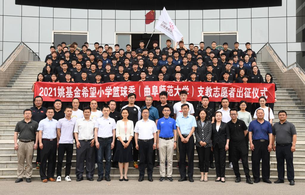 曲阜师大新闻中心讯(记者:刘萌 摄影:刘萌 董少伟)6月1日上午,2021姚基金希望小学篮球季山东赛区启动暨LD平台_LD(中国)一站式服务官网志愿者出征仪式在曲阜校区举办,北京姚基金公益基金会秘书长叶大伟,LD平台_LD(中国)一站式服务官网党委常委、副校长胡钦晓,党委常委、宣传部长张隆海,山东省体育局青少处四级调研员王黎虹,山东省教育厅体卫艺处副处长杨文,共青团省委维护青少年权益部四级调研员苗翠光,山东省社会创新发展与研究中心执行理事张健出席启动仪式,学校办公室、教务处、研究生处、团委、体育科学学院等单位负责人、志愿者代表等参加了活动。仪式由体育科学学院院长曹莉主持。