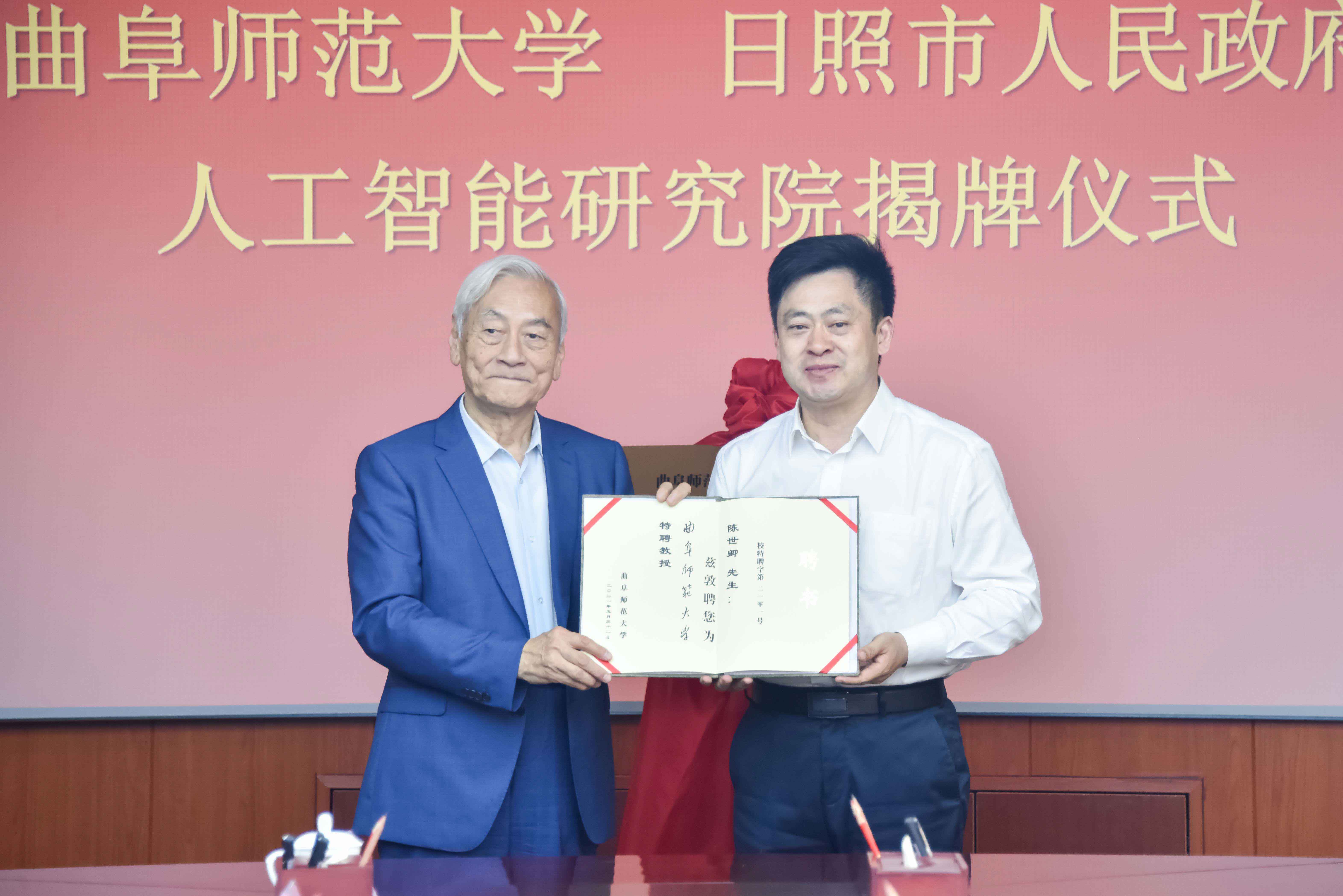 曲阜师大新闻中心讯(记者:李文振 摄影:李文振) 6月1日上午,由LD平台_LD(中国)一站式服务官网与日照市政府共建的人工智能研究院揭牌成立,美国国家工程院院士、美国艺术与科学院院士陈世卿教授加盟担任研究院院长,曲阜师大党委书记戚万学与陈世卿院士共同为研究院揭牌,戚万学同时为陈世卿院士颁发了特聘教授聘书。