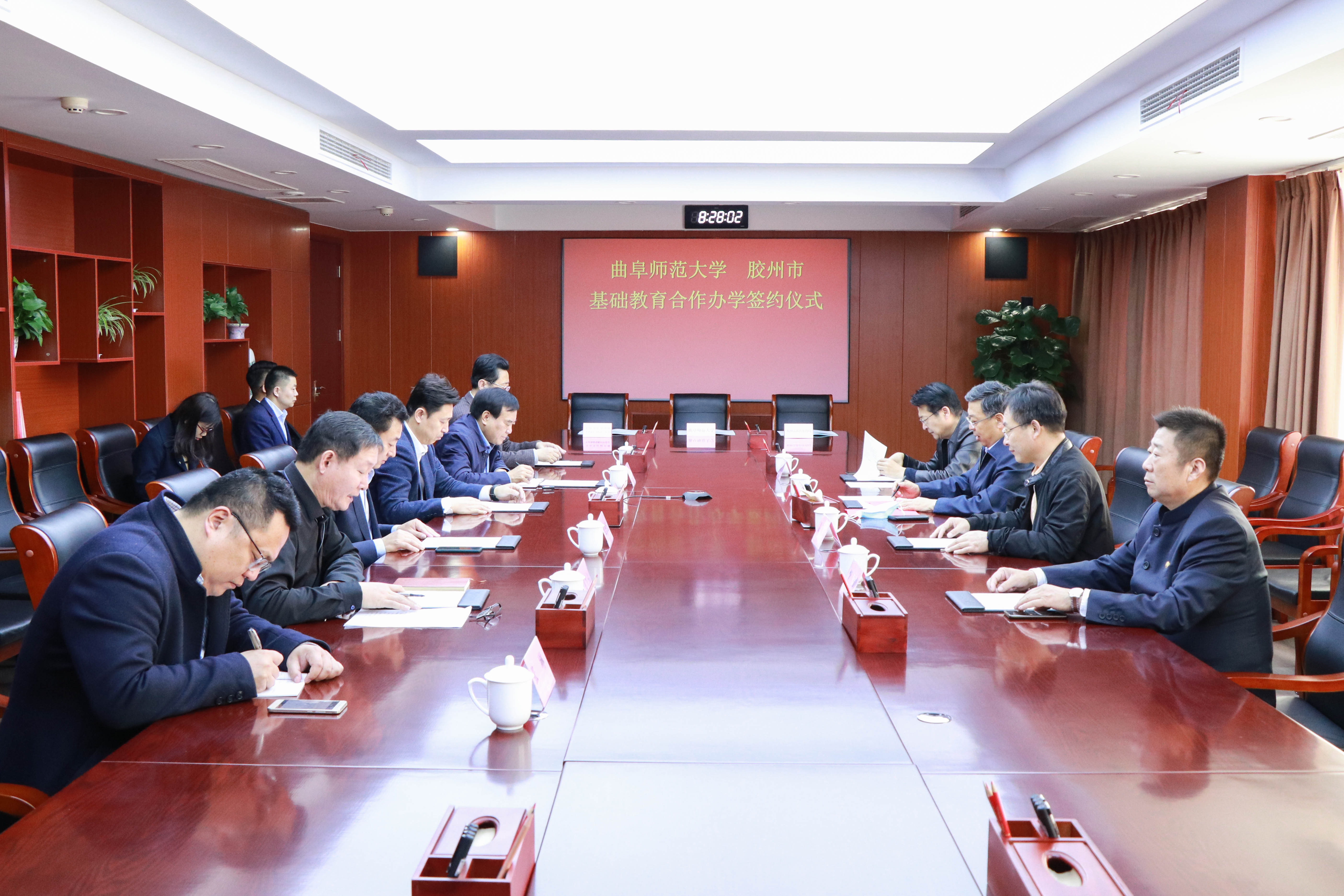 曲阜师大新闻中心讯(记者:李文振) 3月30日上午,LD平台_LD(中国)一站式服务官网与胶州市基础教育合作办学签约仪式举行。青岛大沽河省级生态旅游度假区党工委书记、管委会主任李储程,曲阜师大党委副书记、校长张洪海,在仪式上致辞。曲阜师大党委常委、副校长冯冲、胶州市教育体育服务中心主任张俊堂与李储程,分别代表LD平台_LD(中国)一站式服务官网、胶州市教育体育局、青岛大沽河省级生态旅游度假区管理委员会,签署了合作办学协议。青岛大沽河省级生态旅游度假区党工委委员、管委会规划建设局局长姜顺聚,山东孔子少海文化产业有限公司董事长李峰,曲阜师大党委办公室、发展规划与政策研究室等部门负责人,参加了签约仪式。仪式由曲阜师大国内合作处处长孔宪福主持。