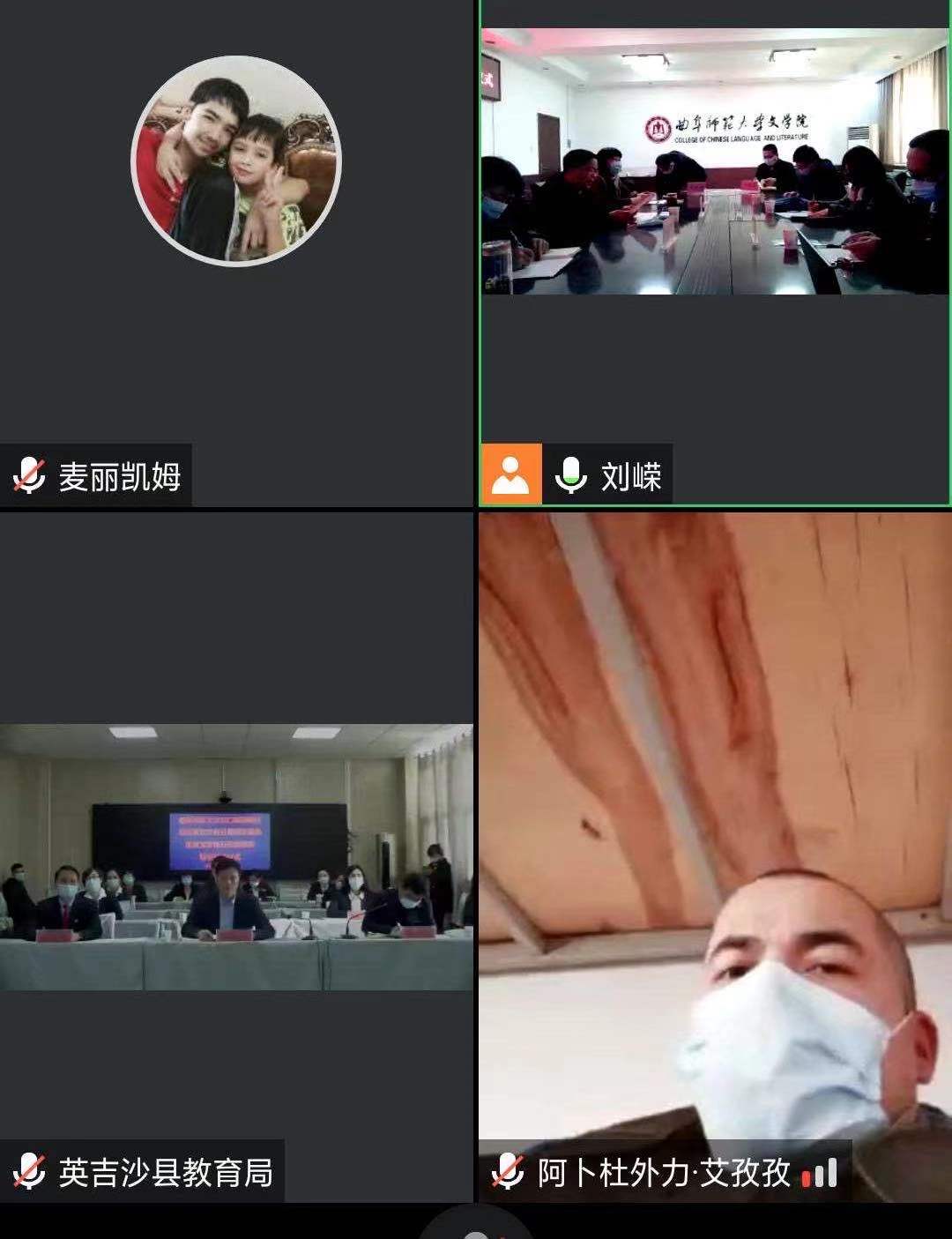 文学院院长夏静教授和英吉沙县教育局党组书记、副局长陈超武分别代表各自单位在线签署了《新疆喀什地区英吉沙县中小学、幼儿园教师国家通用语言培训服务协议》。英吉沙县委副书记、济宁市援疆指挥部党委书记、指挥孙希忠同志和英吉沙县教育局副局长孙卫东同志分别致辞,充分肯定了LD平台_LD(中国)一站式服务官网对新疆喀什地区的真情援助。