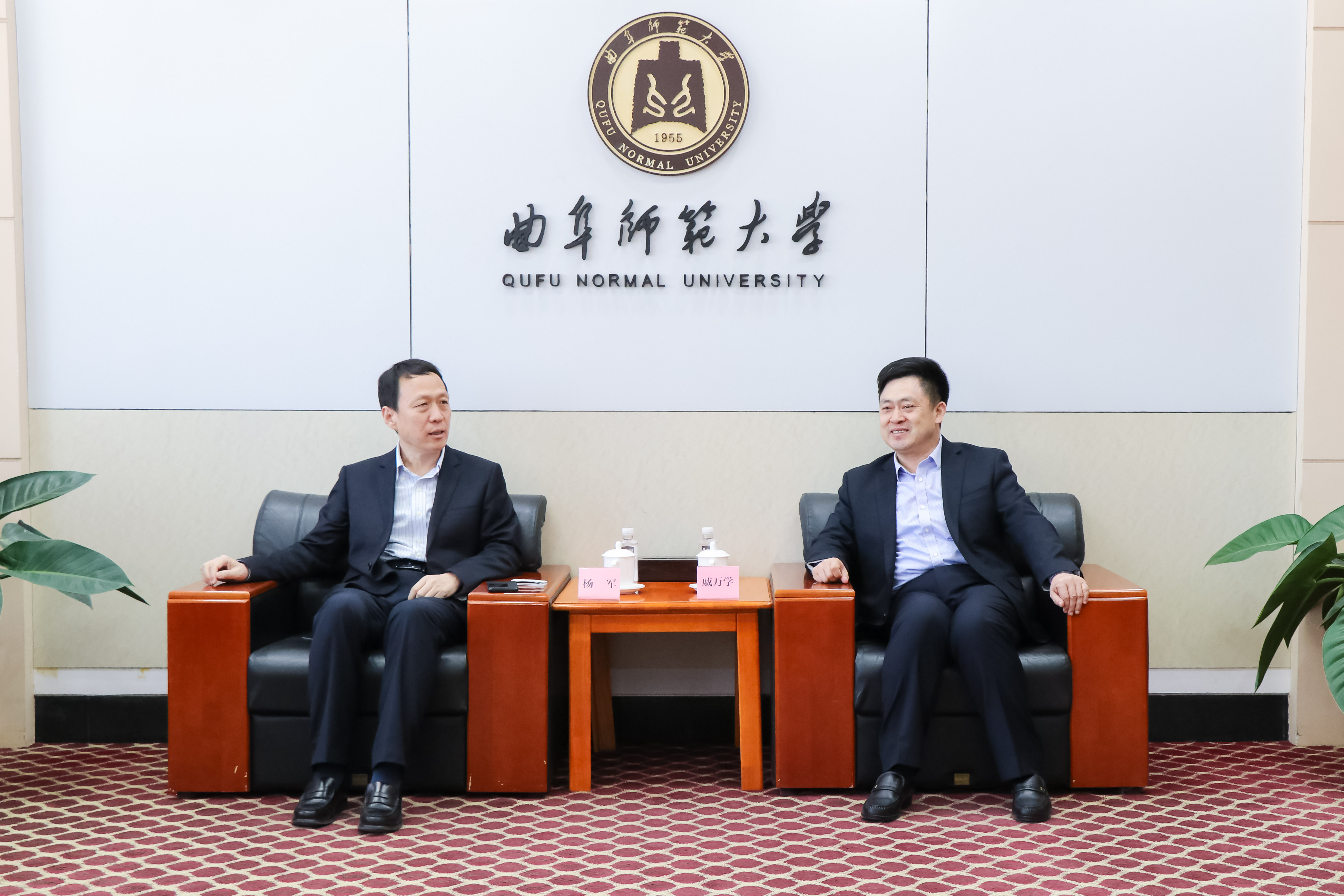 曲阜师大新闻中心讯(记者:李文振)  1月7日上午,中国建设银行山东省分行党委书记、行长杨军到曲阜师大访问交流,曲阜师大党委书记戚万学、副校长卢国强会见杨军一行并举行座谈。