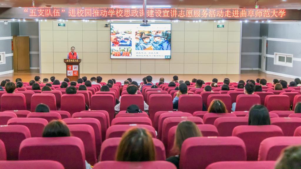 曲阜师大新闻中心讯 (通讯员:王超 摄影:王超 黄江滔 王中华)10月12日上午,由山东省委宣传部、山东省委教育工委、山东省委讲师团组织的“‘五支队伍’进校园推动学校思政课建设宣讲志愿服务活动”,在曲阜师大日照校区举行。学校党委副书记扈庆学出席此次活动,我校曲阜校区和日照校区全体思政课教师、辅导员和学生代表共计五百多人参加了此次活动。