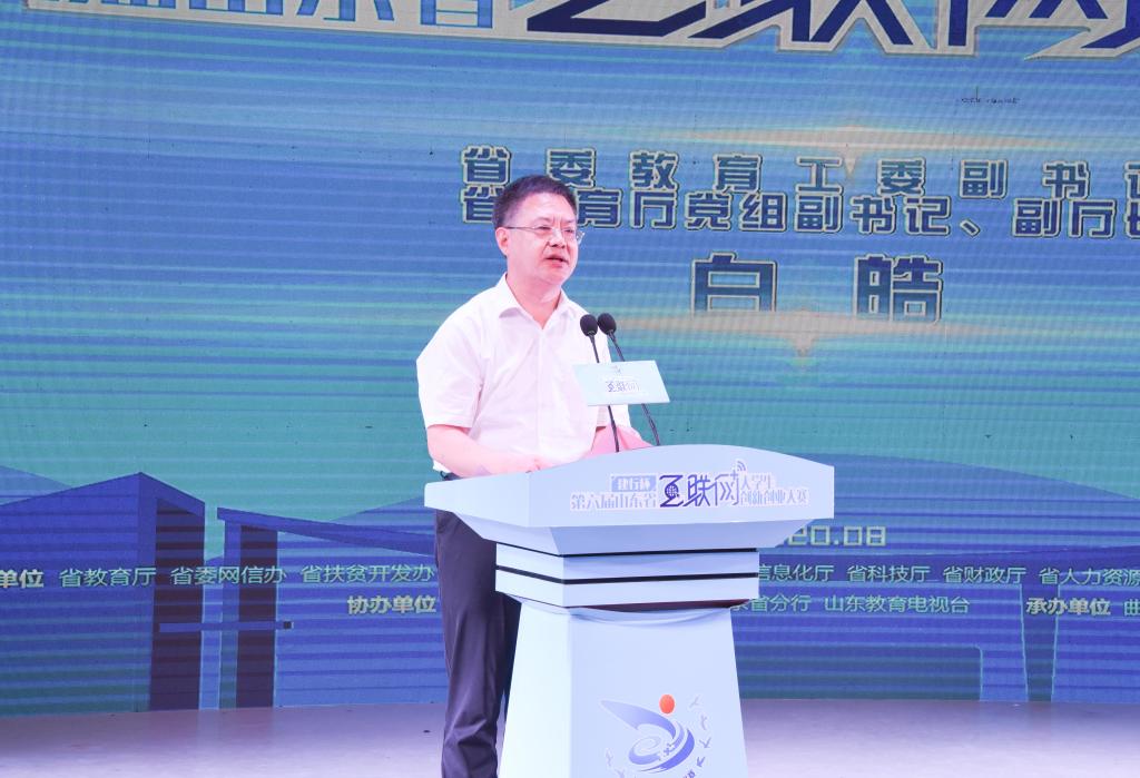 白皓在讲话对本届大赛取得的成绩给予充分肯定。他表示,本次大赛更具全面性,大赛注重做强高教、国际、职教、萌芽各版块,主体赛事形成了各学段有机衔接的创新创业教育链条,实现了区域、学校、学生类型全覆盖。大赛更具教育性,“青年红色筑梦之旅”作为大赛的同期活动,聚焦脱贫攻坚,将大学生创新创业实践与乡村振兴战略、精准扶贫脱贫相结合,推动创新创业教育与思想政治教育相融合,为学生上了一堂最大的创新创业课和国情思政课,激励更多青年学生以青春奋斗领航民族振兴。大赛更具创新性。今年涌现出了一批市场潜力大、社会效益好,技术含量、层次水平较以往有较大提升,具有明显投资价值的好项目,大赛组织工作的规范程度和项目挖掘及培育力度也更加深入。白皓表示,希望社会各界汇聚合力,关注支持高校创新创业教育,关心指导青年学生成长成才,为大学生创新创业提供更优的环境,更好的平台,更加有力地支持。希望青年学子牢记总书记嘱托,怀抱人生梦想,汇聚青春力量,把握时代机遇,坚定奋斗步伐,勇立创新创业的时代潮头,助力山东双创的蓬勃发展,谱写多彩青春的华美乐章。