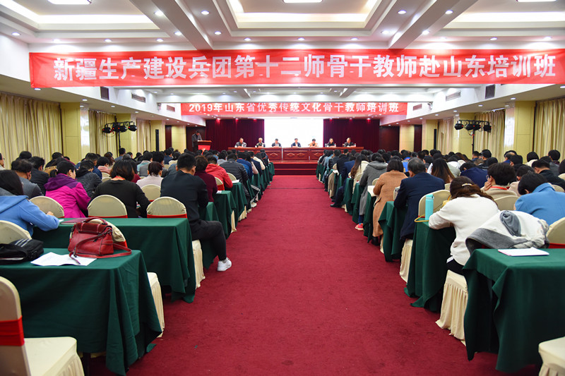 11月16日晚上,我校顺利举行“2019年山东省优秀传统文化骨干教师第六期培训班”暨“新疆生产建设兵团第十二师骨干教师第三期赴山东培训班”开班仪式。我校党委副书记、校长张洪海,山东省教育厅二级调研员、新疆生产建设兵团第十二师教育局副局长冯天晓,我校党委常委、宣传部部长张隆海出席开班仪式,优秀传统文化教育中心、研究生处、国内合作处主要负责人参加了活动。张洪海、冯天晓分别在仪式上作了致辞,张隆海主持开班仪式。