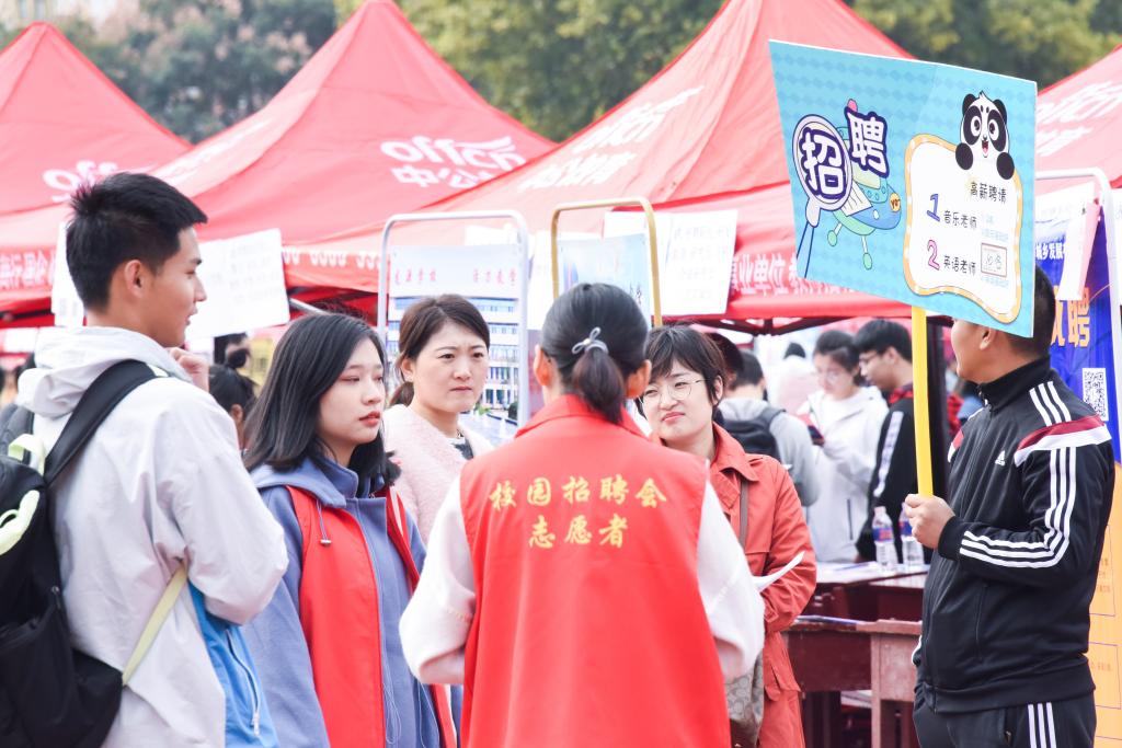 招聘会现场,各用人单位纷纷亮岗位需求、晒待遇福利;应聘学子或扫描二维码投递电子简历、或就关心的问题与招聘人员深入交流;学生志愿者热情服务、细致引导;学校各有关部门统筹协作,为招聘会提供了一系列周密的配套保障措施,畅通了人才招聘服务绿色通道。部分用人单位通过初选和现场考核,与求职者初步达成录用意向或直接签订就业协议。