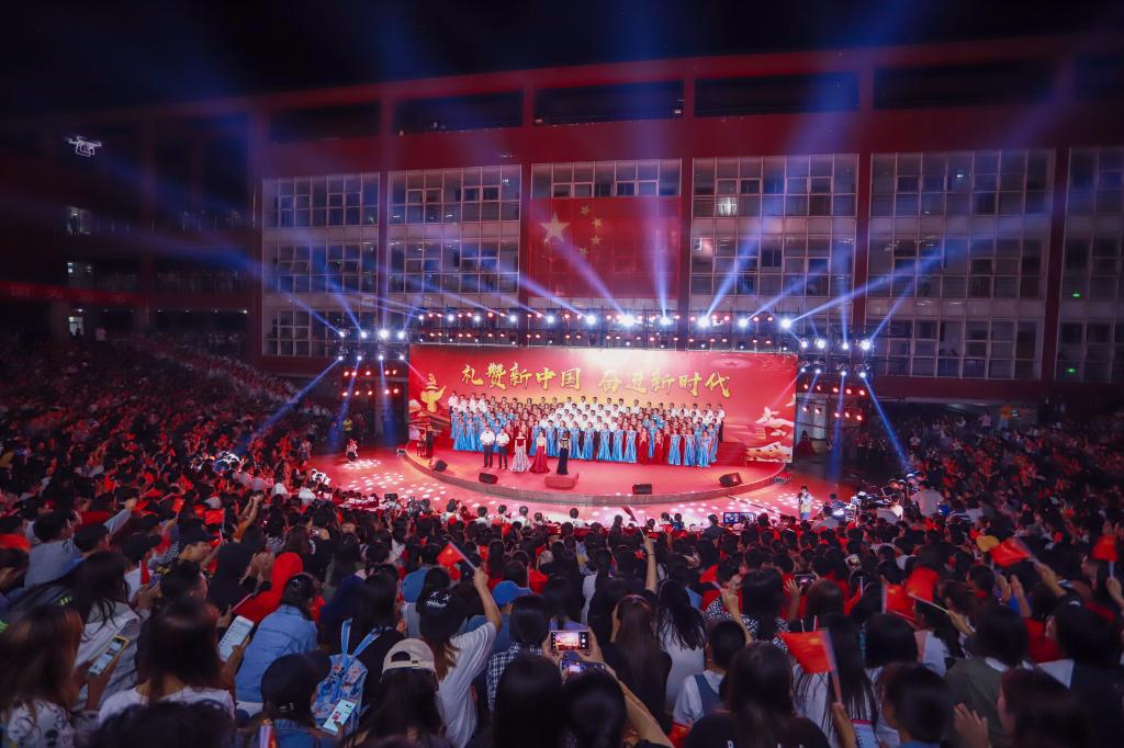 “我们走在大路上,意气风发斗志昂扬……”演出结束后,很多师生在回去的路上仍会情不自禁哼唱起一支支经典曲目。爱国情、奋斗志在动人旋律中萦绕耳旁,更弥漫心间。