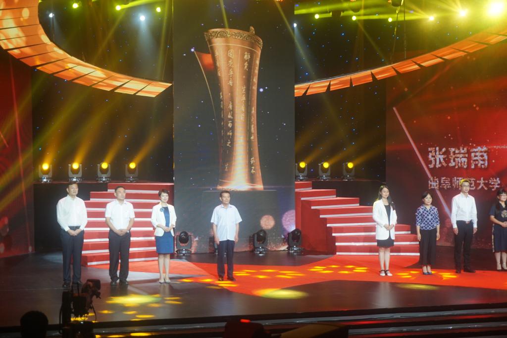 9月6日, 2019齐鲁最美教师颁奖典礼在山东教育电视台演播大厅隆重举行。省委常委、宣传部部长,省教育工委书记关志鸥出席颁奖典礼并为“2019齐鲁最美教师”颁奖。我校马克思主义学院张瑞甫教授荣获“2019齐鲁最美教师”称号。校党委常委、副校长王继锁参加了颁奖典礼。