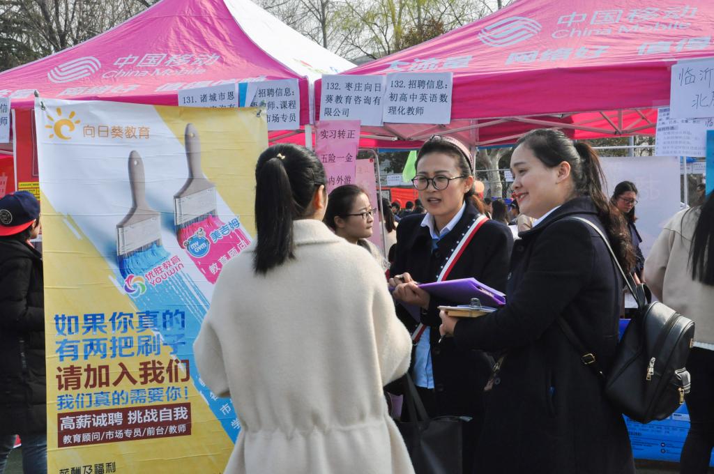 线上线下平台双轮驱动,再启高校学子就业春潮。3月24日,我校成功举办全省首场2018年师范类高校毕业生供需见面会暨济宁市第三届圣地金桥高校毕业生大型招聘会,省内外470家用人单位齐聚孔子故里招贤纳才,提供就业岗位近1.6万个,吸引了校内外约1.5万名高校毕业生前来应聘。