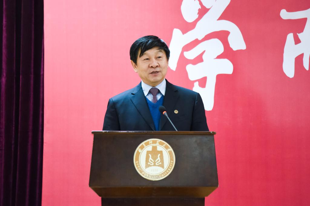 扈庆学在致辞中代表学校热烈欢迎河南校友会的校友们重回母校,对校友会捐赠方鼎表示衷心感谢。他指出,河南校友会的广大校友在各行各业取得优异成绩,为母校增添荣誉;在服务校友、回报母校方面贡献良多,体现了浓厚的爱校情怀,感动鼓舞了在校师生。扈庆学表示,包括河南广大校友在内的50余万校友对于母校的长期关注和支持,是学校加快建设孔子家乡一流大学的强有力支撑。学校在新的一年里将乘着发展向上的强劲东风,继续砥砺前行、走在前列,以优异成绩回应海内外广大校友对母校快速发展的热切期盼。他指出,广大在校师生与海内外校友共同组成了曲园的命运共同体,校兴我兴、校荣我荣,衷心希望广大校友为母校事业发展献计献策、助力助威;学校永远是广大校友成长进步、干事创业的坚强后盾,是广大校友寻找青春记忆的温馨港湾,是大家共同的精神家园,希望全体曲园人不忘初心、牢记使命、携手同行、再创辉煌。扈庆学在致辞中同时向广大校友提前致以新春的问候和祝福。