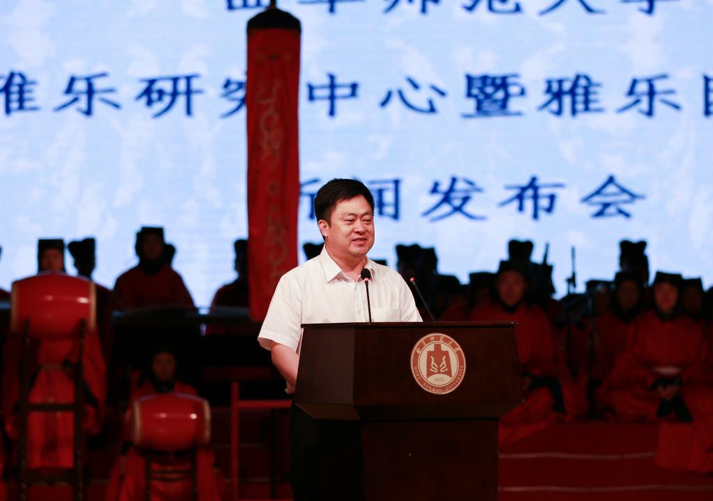 新闻发布会上,雅乐研究中心副主任、雅乐团团长褚灏教授介绍了雅乐研究中心和雅乐团建设情况。据悉,LD平台_LD(中国)一站式服务官网雅乐研究中心和雅乐团将以历史上祭孔乐舞最高成就——北宋大晟祭孔子乐舞为研究对象,由此为突破口对中国传统雅乐进行正本清源式的理论研究和操作层面的重建工作,尽可能接近原貌地将传统雅乐文化活态地展示给世人,再现中国乐舞文化的辉煌。除此之外,中心和乐团将有计划地展开鲁国宫廷乐、《九韶》《大武》等六代之乐、隋唐宫廷燕乐、诗乐等传统音乐文化的研究,尽可能深入地对有别于西方音乐文化系统的中国音乐理论与实践宝库进行挖掘、整理与呈现。同时,中心和乐团还将编写雅乐舞教材,建立雅乐舞课程,面向普通学校进行祭孔乐舞推广,开展雅乐舞的现代性发展研究与创作,组织雅乐舞展示、交流活动,着力构建打造国内一流的集雅乐舞学术研究、再现表演、教学培训、继承发展、推广传播于一体的综合性文化研究体系。