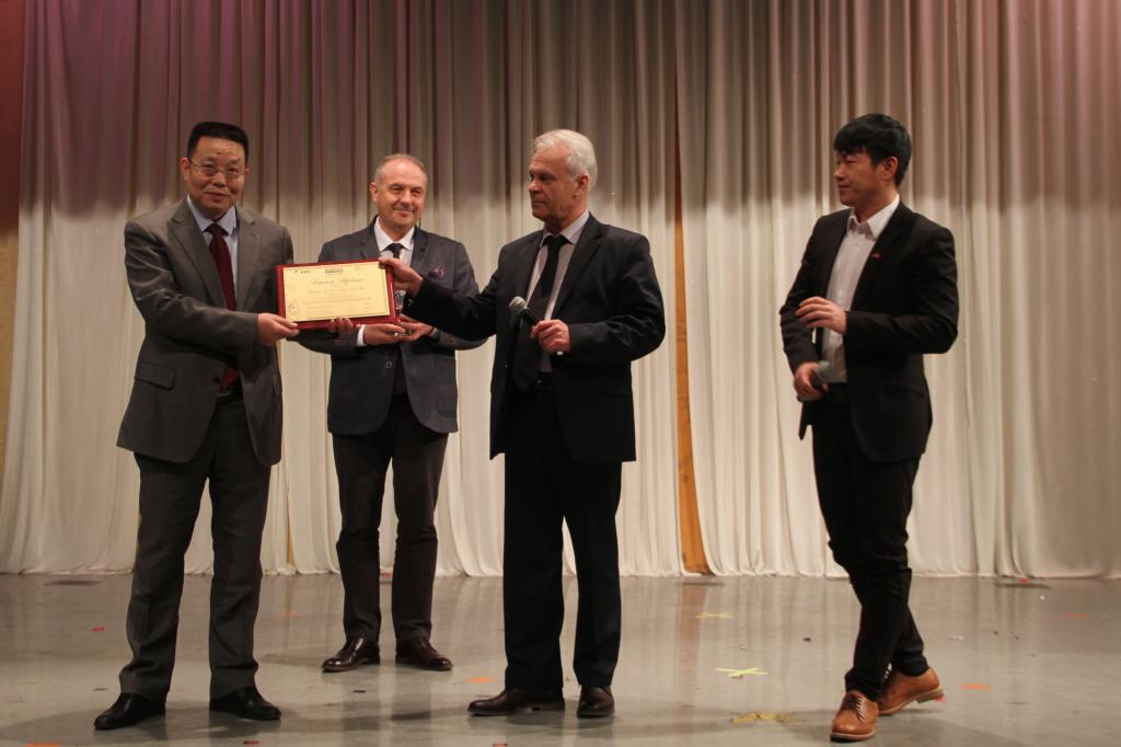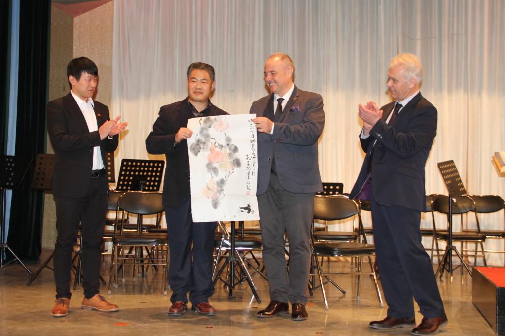 音乐会上,瓦切斯拉夫·巴勒诺夫斯基受欧亚经济联盟国际音乐比赛主办方的委托,为该项比赛的中方评委、我校音乐学院院长褚灏进行颁奖,并聘其为该项国际音乐赛事的常任中方评委。