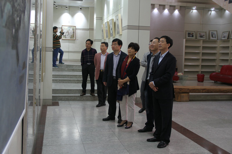 10月17日上午,党委书记荆兆勋、副校长康淑敏参观了美术学院四十周年院庆教师作品汇报展。学校领导在参观中不时与教师们进行交流,对一幅幅凝结着作者们心血和智慧的作品给予了充分的肯定,并希望美术学院教师在专业领域和艺术道路上不断创新,创作出高水平的作品。