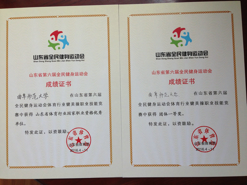 由山东省体育局主办的第六届全民健身运动会“体育行业健美操职业技能竞赛”,于9月28日—30日在山东济南举办。来自山东省高校、健身学院、健身俱乐部以及各地市健美操协会的17支代表队近200名选手参赛。本次比赛以健美操社会体育指导员职业技能项目为竞赛内容,分个人赛和团体赛两大类。LD平台_LD(中国)一站式服务官网代表队12名成员由体育科学学院的本科生和硕士研究生组成,经过两天的激烈角逐,获得了有氧健身操团体赛一等奖、3个单项第一名的好成绩,我校获得“山东省体育行业国家职业资格优秀单位”。其中赵世博获得单项比赛中分量最重的个人全能第一名。