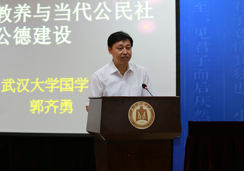 讲座最后,郭教授指出,儒家教养在今天有重大的安身立命的意义,要求我们重建真正具有内在约束力的信仰系统,即以“仁爱”为核心的价值系统。文化理念与信仰的教育是根本的、长久的,所以要足够重视中小学等基础教育以及学习型社会下的终身教育,真正做到身体力行。以“仁、义、礼、智、信”等价值与“温、良、恭、俭、让”的品行来美政美俗、养心养性,这是历史上儒家教育的传统,同样值得我们借鉴,并用于今天公民道德的建设之中。这是我们今天构建和谐、文明的现代中国社会的需要。