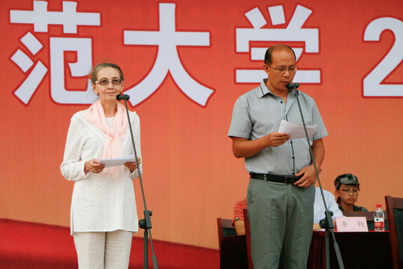 典礼上,教师代表文学院副院长李钧教授、工学院张正强教授,外籍教师代表娜杰日达•拉祖姆科娃女士、肯尼斯•罗伯特•阿诺德先生,学生代表汉语言文学专业2014级王晓晖同学、传媒学院2015级研究生赵彤同学,新生代表软件工程专业2016级唐晓旭同学、马克思主义学部2016级王思贤同学先后发言,围绕如何更好地度过大学生活分享经验、寄托期望、畅谈梦想。