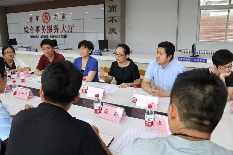 康淑敏代表学校对团中央调研团一行表示欢迎,简要介绍了我校的办学历程、办学成就、学科特色及团学工作等基本情况。康淑敏指出,团中央领导此次专程到我校调研,是对我们学校共青团工作的肯定和鞭策,希望团中央、团省委领导对我校的团学工作给予宝贵指导、提出宝贵意见。团委书记屈跃宽汇报了我校共青团特色工作,团委副书记、日照校区学生工作办公室副主任陈庆国汇报了我校“青年之家——GCP综合服务平台”的建设工作。