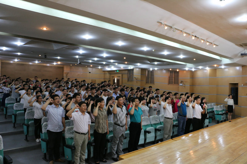 为庆祝中国共产党成立九十五周年,6月14日下午,我校在两校区分别举行新党员入党宣誓大会。两校区共403名预备党员参加了宣誓。党委书记荆兆勋、副校长康淑敏出席大会并讲话。党委组织部部长马恩,日照校区管理办公室主任池福安主持大会。