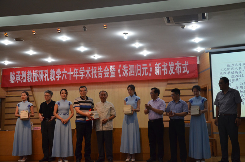 6月12日晚,骆承烈教授研孔教学六十年学术报告在孔子会堂举行。报告会前进行了骆承烈教授新书《洙泗归元》发布式,发布式上,骆承烈教授向我校图书馆、历史文化学院、孔子文化研究院、文学院赠书。随后,骆教授为大家作了题为“骆承烈谈孔子”的报告。历史文化学院院长成积春教授主持了报告会。
