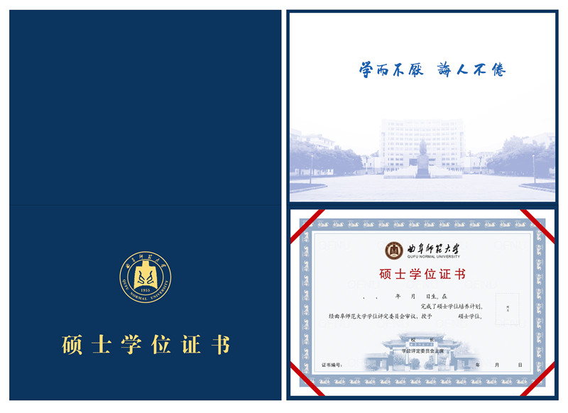 2015年6月,国务院学位委员会和教育部联合印发《学位证书和学位授予信息管理办法》,规定自2016年1月1日起,各学位授予单位自行设计和印制学位证书。文件颁布后,研究生处随即启动了我校学位证书设计工作。在与教务处、职业与成人教育学院充分讨论后,研究生处与多家实力雄厚的证书印制公司沟通接洽,几经修改、完善,充分加入曲师大元素,突出曲师大特色,经校学位评定委员会审议通过,最终确定了我校自主设计的“曲师大”版学位证书。