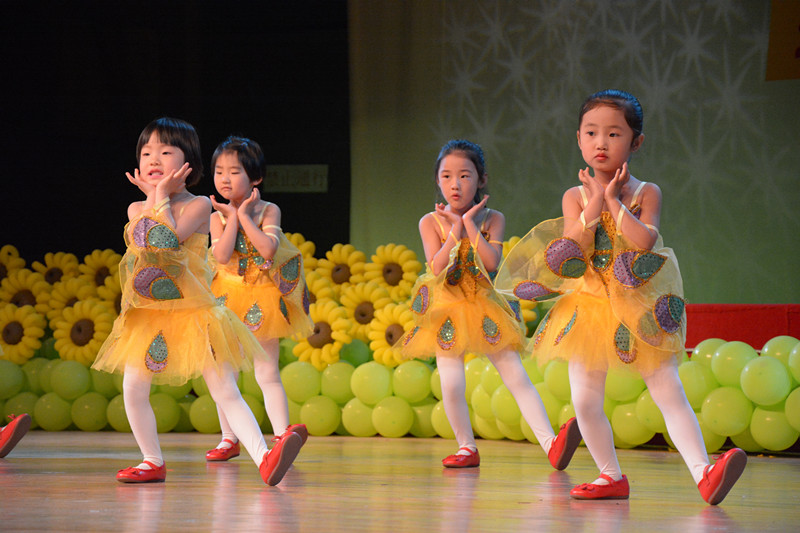 在六个小主持人精彩的亮相中,庆“六一”文艺汇演拉开帷幕。大一班的舞蹈《老师亲妈妈亲》,动感的音乐、满含深情的歌词,以及孩子们俏皮灵动的舞姿,使在场的老师和家长们为之心动;中班的舞蹈《快乐儿歌》《咏鹅》,充分展示了孩子们的童真童趣;小班的舞蹈《快乐宝贝》《去郊游》《虫儿飞》,动作稚朴,笑容纯真,博得了大家的阵阵掌声;大班的《孔子爷爷》《说唱脸谱》,向大家展示了优秀的中华传统文化;大三班的舞蹈《春芽》,将抒情的旋律和柔美的舞姿完美融合,带给观众以美的享受;中班的童话剧《半夜鸡叫》,通过孩子们惟妙惟肖的表演重新诠释了这个经典故事,让小朋友明白了做人不能太吝啬,否则就会像剧中的周扒皮一样“悲惨”。 互动节目更让台上台下连成一片,嗨翻全场。孩子们个个劲头十足,红红的脸蛋上流露出灿烂的笑容,家长们的阵阵喝彩声更是把演出推向了高潮。在中二班的《庆祝六一》的歌曲中,文艺汇演圆满落下帷幕。