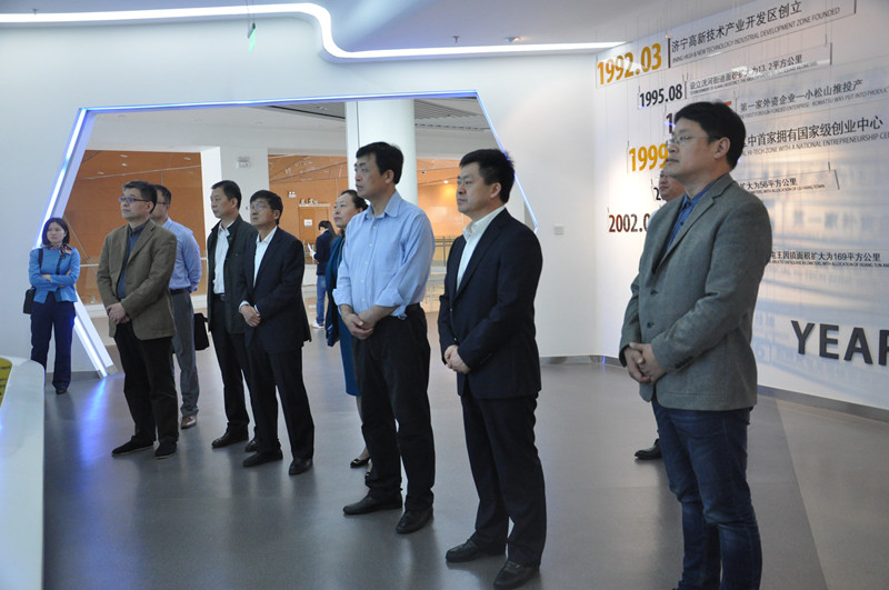 签署协议仪式前,校长戚万学、副校长王继锁一行在济宁高新区党工委副书记鹿洪超的陪同下实地考察了济宁高新区科技中心、创意大厦、大学园及人才联盟。