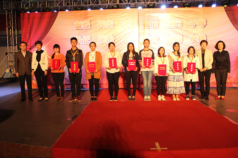 大会隆重表彰了来自11个学院的37名践行社会主义核心价值观先进个人,他们分别获得了见义勇为先进个人、孝老爱亲先进个人、诚实守信先进个人、志愿奉献先进个人荣誉称号。副校长康淑敏和与会领导嘉宾向获奖青年学子颁发了纪念奖章和荣誉证书。