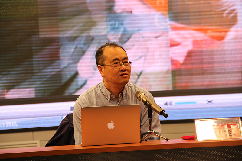 游飞先生的讲座以《开麦拉狂想曲》视频片断为导入情境,把现场师生带入轻松的学术研讨氛围中,以电影与弗洛伊德精神分析学的渊源为开端,系统阐释了电影与梦的相似机制,对法国、美国、中国等国家对电影的追求与定位做出细致对比与分析。游飞先生还阐释了叙事、记录、实验以及奇观电影等多种电影形态,重点分析了当下中国电影的发展现状,指出中国电影的发展应当充分吸收我国传统文化的精髓,加强电影的故事性和叙事性,在形式和内容的双重艺术工作中容纳更多的人文情怀。
