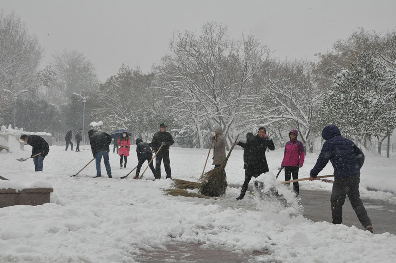 党委书记荆兆勋、校长戚万学等学校领导和师生一起,拿起清扫工具清理积雪。零下5度的低温,再度飘洒的雪花,加上凛冽的北风,增加了除雪的难度。师生们的手和脸都冻得通红,头发被雪水和汗水浸湿,但这丝毫没有影响大家的工作热情和效率。师生们团结协作,经过三个多小时的奋战,除雪工作取得了明显的效果。