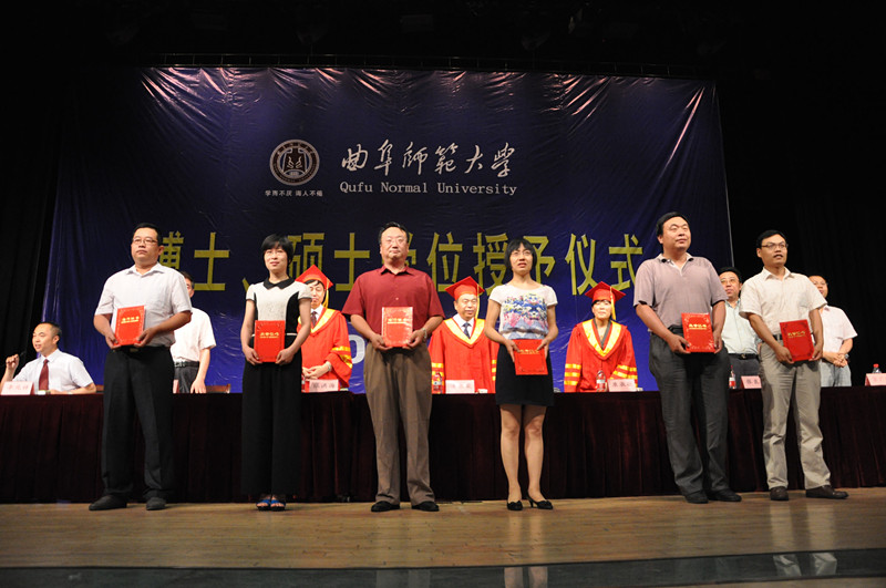 康淑敏宣读了2014年优秀研究生指导教师和研究生教育先进工作者名单,张洪海宣读了2014年山东省优秀毕业研究生名单、校优秀毕业研究生名单和校长科研奖励基金获得者名单。在主席台就坐的领导为获奖代表颁发了荣誉证书。