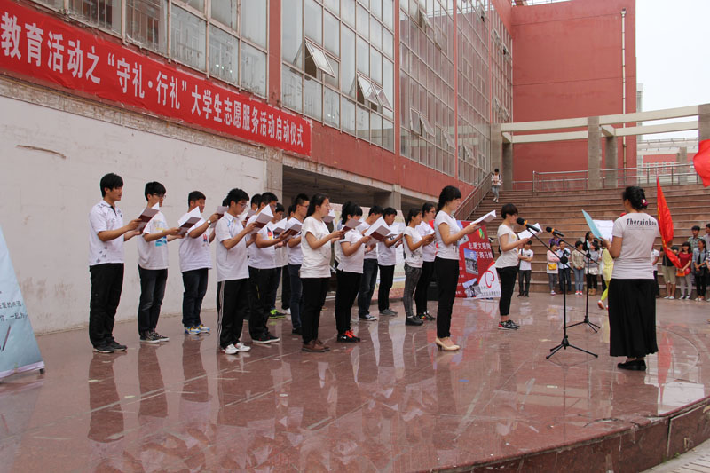 孔令军简要介绍了活动方案,本次志愿服务活动由“垃圾不落地,文明校园行”、“举手之劳美校园”、“文明监督志愿行”、“尊师一杯水,敬师一个座”、“漫画吐槽”等环节组成。随后,志愿者代表刘晓萌同学宣读了倡议书。