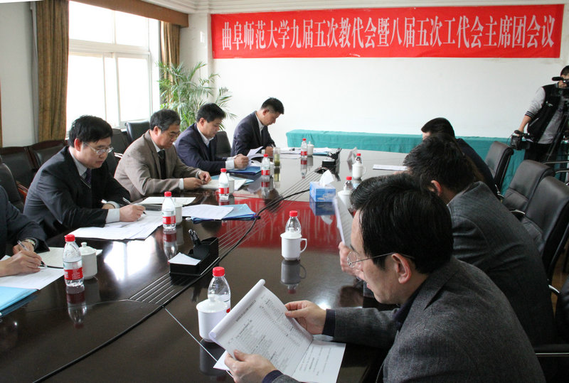 4月19日上午,我校九届教代会暨八届工代会第五次会议举行主席团会议,主席团成员、各代表团团长参加了会议。会议由党委书记荆兆勋主持。
