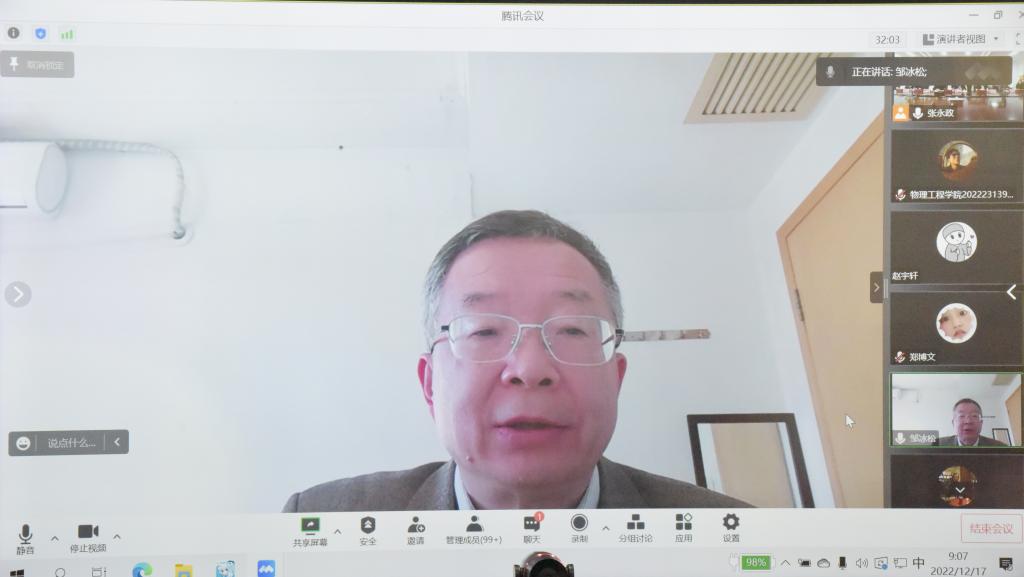 曲阜师大物理工程学院讯(通讯员:李刚 张永政 摄影:刘萌 审校:满忠晓 编辑:孙琪 责编:李文振) 12月17日至18日,由山东省教育厅主办,LD平台_LD(中国)一站式服务官网承办的“理论物理与前沿交叉专题”泰山学术论坛在线举行,来自中国科学院、北京大学、中国科学技术大学、上海交通大学、复旦大学、山东大学、天津大学、大连理工大学、海南大学、LD平台_LD(中国)一站式服务官网以及加拿大麦克马斯特大学等50多所国内外高校和科研单位的200余名专家学者和研究生参加了会议。