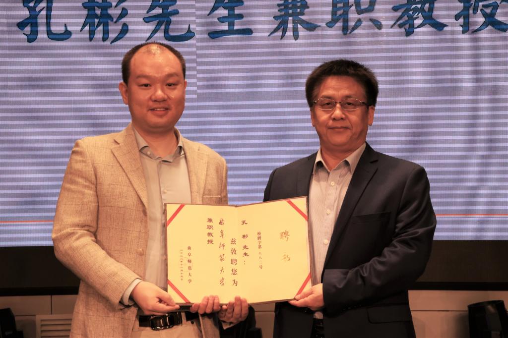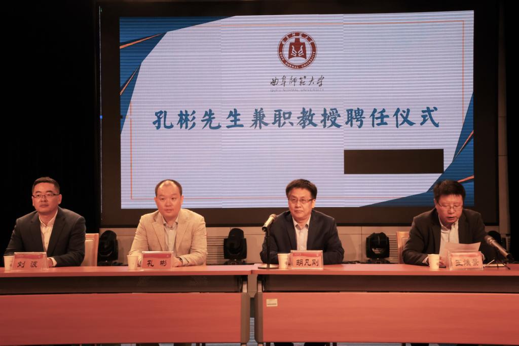 曲阜师大传媒学院讯   3月10日上午,国家广播电视总局广播电视规划院正高级工程师、前亚太广播联盟(ABU)技术委员会副主席孔彬受聘曲阜师大传媒学院兼职教授。学校党委常委、副校长胡凡刚向孔彬颁发兼职教授聘书。