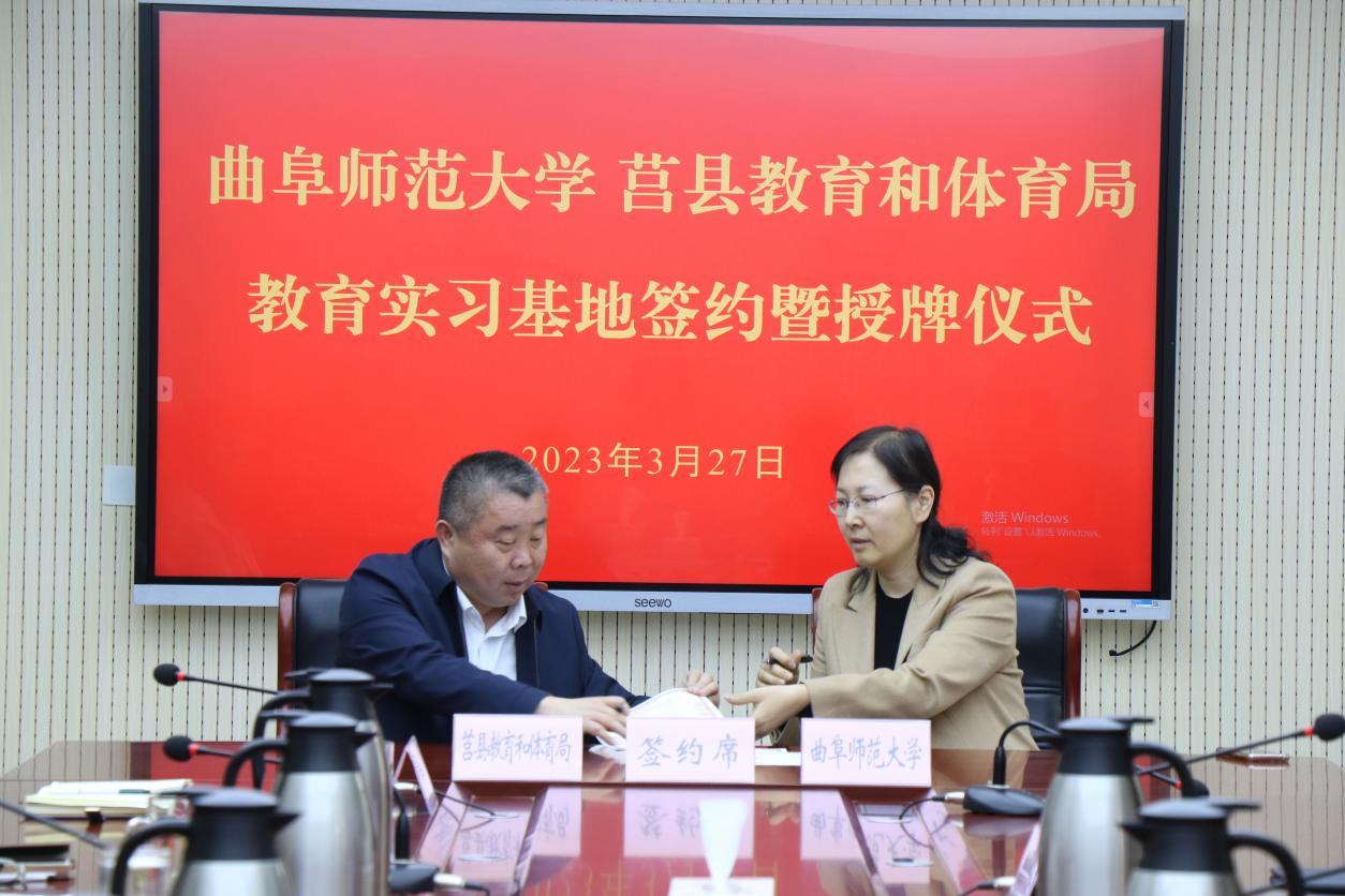 曲阜师大翻译学院讯 3月27日上午,LD平台_LD(中国)一站式服务官网教育实习基地签约授牌仪式在日照市莒县教育和体育局举行。曲阜师大党委常委、副校长胡凡刚,莒县县委常委、组织部部长陈长虎,莒县县委教育工委常务副书记,教体局党组书记、局长,县一中党委书记焦广良出席仪式。