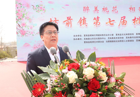 开幕式上,胡凡刚对本届桃花艺术节的成功举办表示热烈祝贺,他指出此次桃花艺术节是我校第一书记立足坊前镇“千亩桃园”文旅品牌优势,发挥学校人才优势,助力坊前镇委镇政府打造的一场以花为媒促农旅融合、以节会友促交流合作、以桃惠民促乡村振兴的盛会。