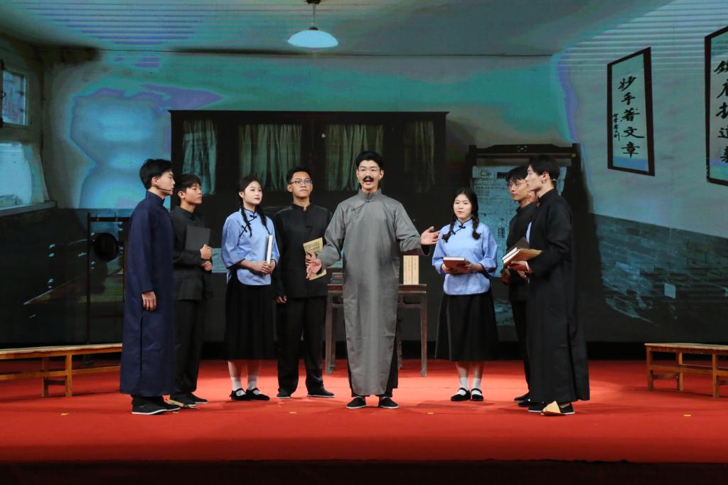 曲阜师大团委讯 为丰富学习贯彻习近平新时代中国特色社会主义思想主题教育载体形式,落实团中央关于示范打造“话剧团课”相关要求,教育引导广大青年坚定不移听党话、跟党走,曲阜师大团委和文学院联合排演了原创话剧团课《薪火相传》并于4月26日晚成功首演。学校党委副书记卢国强与一千多名师生一同观看了演出。