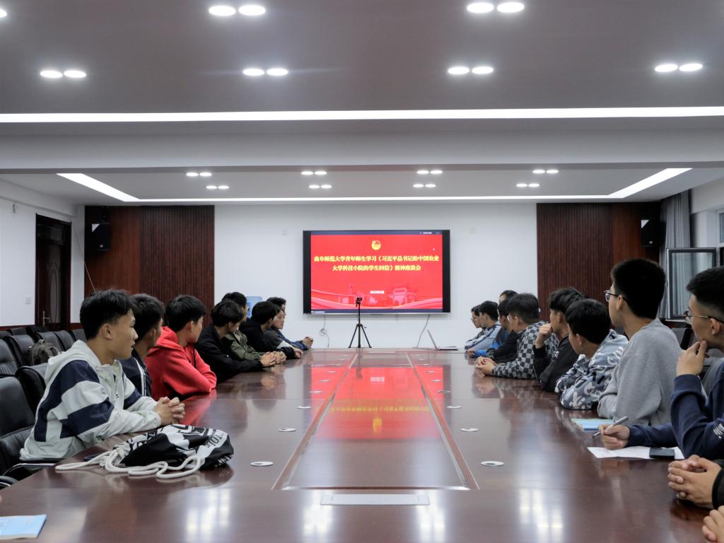学生工作处处长姜美颖领学了《习近平总书记给中国农业大学科技小院同学们的回信》重要精神。