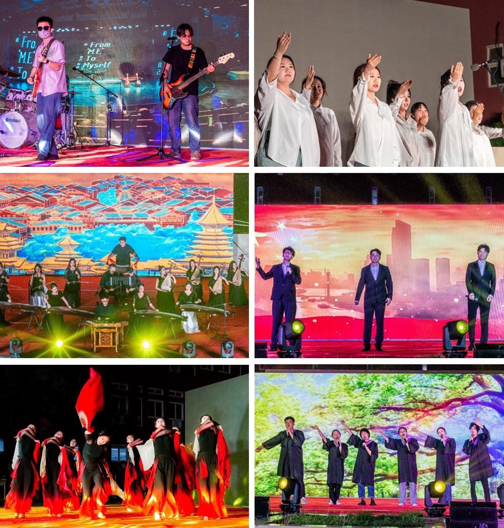 下半场的合唱《老师,我想对你说》以学生的视角唱出了对老师的依依不舍眷恋之情;民乐合奏《盛世国乐》以中国传统器乐展示中国传统音乐之美;歌曲《追寻》气势如虹,完美诠释了中华民族一路走来的伟大历史成就;舞蹈《溯悦》以舞动千姿百态之美,尽显青春活力;全体毕业生共同唱响《那些年》,唯愿此去繁华似锦,再相逢依旧如故。
